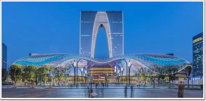 這并不是我們中國設計師設計的,又是一個玩轉中國文化的外國事務所,英國貝諾Benoy建筑設計公司,說幾個他們在國內做的項目,相信大家就會記住他們了,蘇州中心,長沙IFS,上海IAPM,個頂個的新人氣地標。