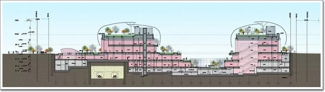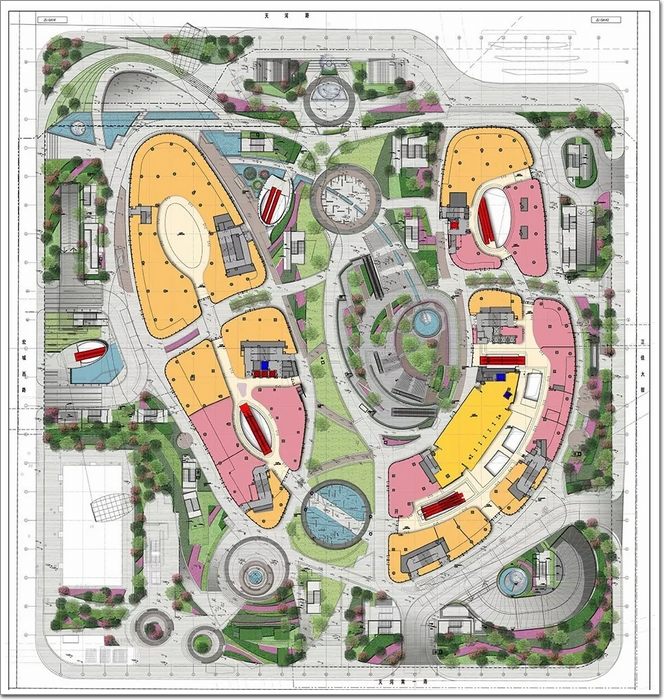 回歸正經,咱們看看天環廣場的設計,天環廣場總用地4.7萬㎡,總建筑面積11萬㎡,地上兩層地下三層,高24m,為中軸線絕佳的開闊視野做出了巨大犧牲貢獻。