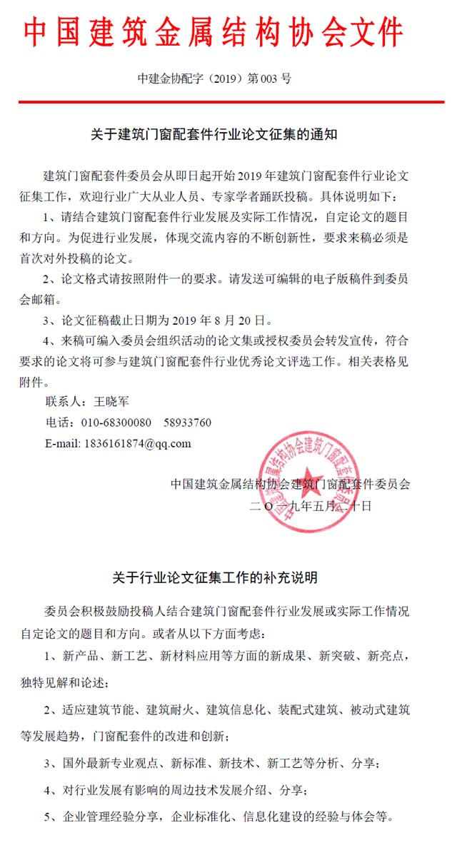 建筑門窗配套件行業資訊集錦:匯集行業最新資訊、專家最新技術論文..... 2012年度建筑門窗配套件行業“用戶首選品牌”調查活動:為促進建筑門窗配套件行業健康發展,提高整個行業的品牌意識...... 第三屆建筑門窗配套件行業科技創新論文大賽:第三屆建筑門窗配套件行業科技創新論文大賽頒獎盛典在廣東省佛山市隆重召開...... 第十屆建筑門窗配套件行業技術交流會:2011年10月31-日,第十屆建筑門窗配套件行業技術交流會在北京圓山大酒店順利召開......