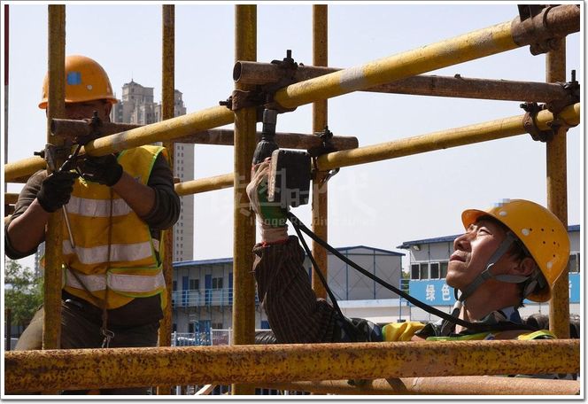 建筑工人在高樓上暴曬勞動,即使再辛苦,他們也是把苦吞在肚子里,一句也不會向家人吐露,避免家人擔心。
