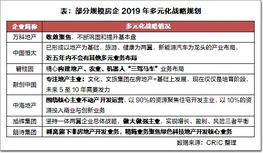 2019年,部分規模房企都提出了經營策略調整,與之前全面出擊多元化不同,房企們普遍表達了要聚焦主業,收縮多元化業務的意愿。