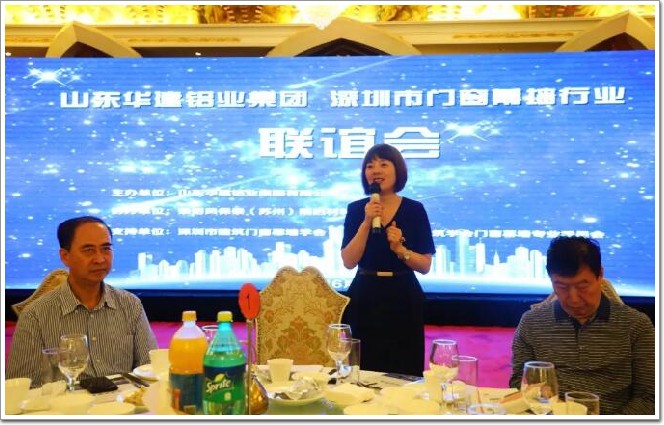 山東華建鋁業(yè)集團副總裁、營銷總監(jiān)丁三蓮針對華建鋁業(yè)集團近年來的發(fā)展狀況向來賓們做詳細介紹