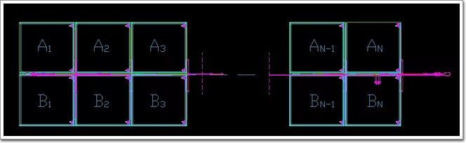 1.采用歐瑞康標準組件切割的方式,接線盒設(shè)置在組件的底邊,并盡量靠近玻璃副框,滿足建設(shè)室內(nèi)外觀效果。光伏組件采用同層橫向串聯(lián)設(shè)計,建筑層間設(shè)置線槽,并在合適位置進入室內(nèi),通過建筑吊頂、強電管井接入電網(wǎng)。如下圖所示: