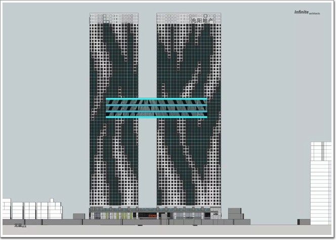 昭陽“O立方”大廈位于禪城區(qū)朝安路與同濟(jì)東路交匯處。周圍是高層住宅和低層廠房。與其追求200米的規(guī)劃極限,帶來突兀的城市天際線和巨大的結(jié)構(gòu)成本,不如通過兩座160米的“雙塔”來降低高度,創(chuàng)造更柔和的城市天際線。