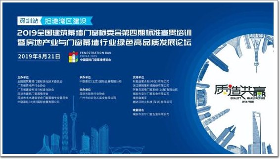 主題:2019全國建筑幕墻門窗標(biāo)委會第四期宣貫培訓(xùn)”暨“搶灘灣區(qū)建設(shè)——房地產(chǎn)業(yè)與門窗幕墻行業(yè)綠色高品質(zhì)發(fā)展論壇