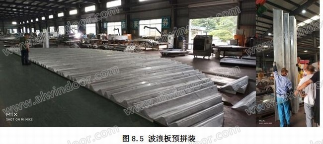 8.3.2 加工好的波浪板在工廠進行預拼裝(如圖8.5),滿足要求后才進行噴涂。