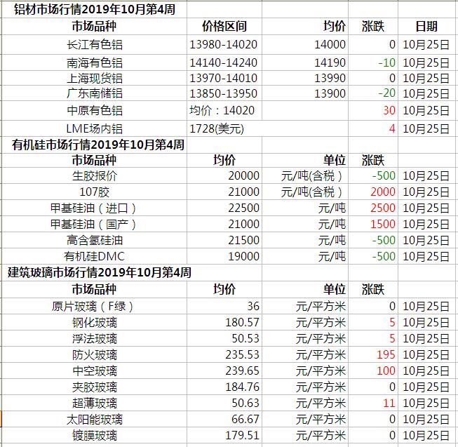 此原材料價格由中國幕墻網收集整理,僅供參考!