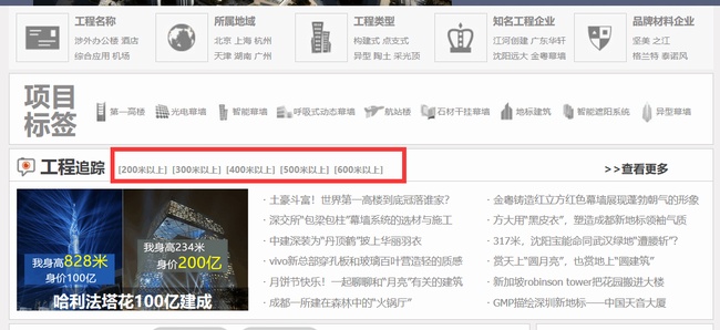 對超高層幕墻感興趣的網友,可以點擊下方鏈接,進入“中國幕墻網ALwindoor.com工程庫”頻道,查看全球“200米—600米”幕墻工程相關信息,如下圖所示: