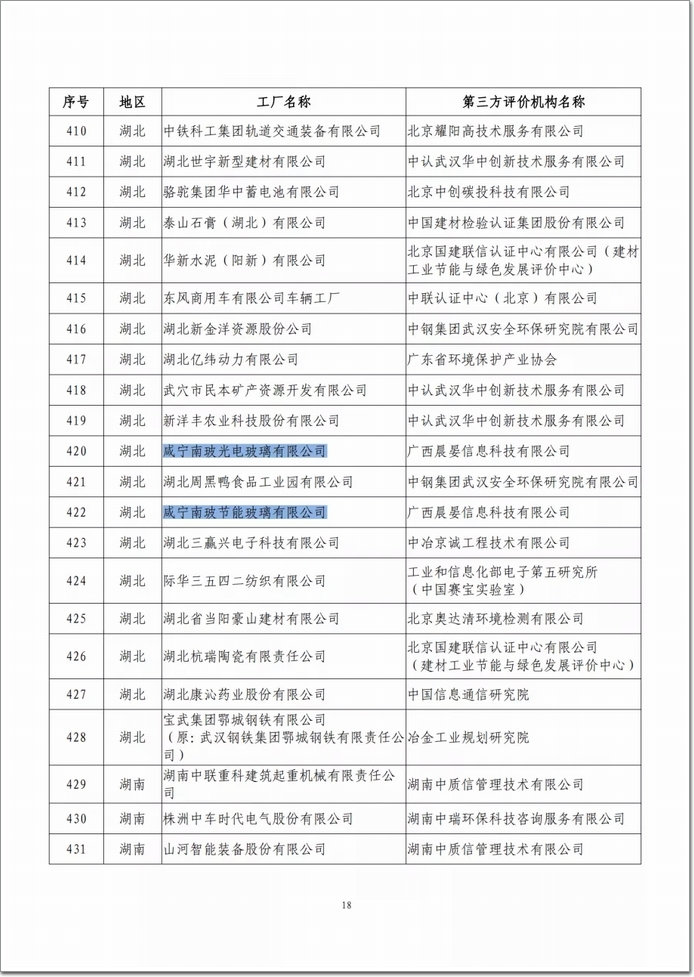 咸寧南玻光電玻璃有限公司、咸寧南玻節能玻璃有限公司入選第五批“綠色工廠”
