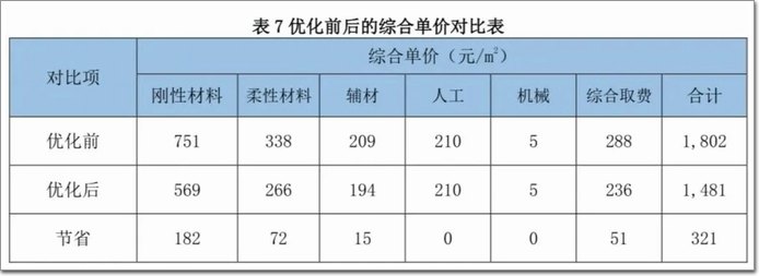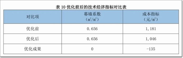 優化前后,按地上建筑面積計算,該玻璃幕墻工程的技術經濟指標見下表10。
