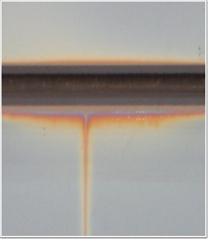 “貓膩1”:在硅酮密封膠中加入大量的低沸點(diǎn)物質(zhì)(如白油)來代替二甲基硅油。白油又稱為液體石蠟油,是一種無色、無味、無熒光的透明油狀液體,主要成分為C16~C31 的正異構(gòu)烷烴類混合物,分子鏈以C—C 鍵為主,具有可燃性和揮發(fā)性。白油作為增塑劑,雖然可以增加硅酮密封膠的光澤度,提高硅酮密封膠的擠出速度,與二甲基硅油作增塑(詞條“增塑”由行業(yè)大百科提供)劑的硅酮密封膠相比,可大大節(jié)約成本。但是,白油分子量較低,易揮發(fā),會(huì)隨著使用時(shí)間的推移,逐漸從硅酮密封膠中揮發(fā)或滲出,失去增塑作用,最終導(dǎo)致硅酮密封膠硬度(詞條“硬度”由行業(yè)大百科提供)增加,發(fā)生脆化開裂現(xiàn)象(如圖一),影響整個(gè)工程的質(zhì)量和安全。白油如果滲入到丁基密封膠中,還能夠溶解丁基密封膠,造成彩虹(如圖二)、流油、流淚(圖三)等現(xiàn)象。