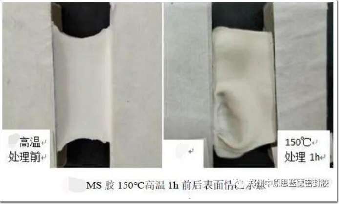 MS密封膠的鑒別方法:①依據(jù)GB/T31851-2015《硅酮結(jié)構(gòu)密封膠中烷烴增塑劑檢測(cè)方法》中的試驗(yàn)方法進(jìn)行紅外光譜和熱重分析來鑒別。②將固化后的密封膠在150℃條件下處理1h后查看密封膠表面是否出現(xiàn)起鼓、龜裂和顏色變黃(圖六),若有則可初步判斷密封膠為MS膠而非硅酮膠。