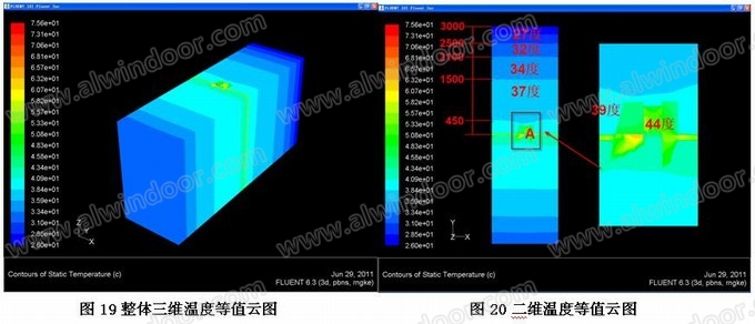 另外由于熱傳導作用,鋁型材區(qū)域溫度較高,約達到了44度。