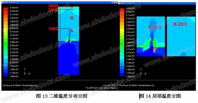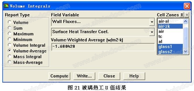 上圖可知,在開啟門的關閉狀態(tài)下,中空LOW-E玻璃的U值為1.68 W/m2·K,與廠家提供的玻璃熱工參數(shù)相近。