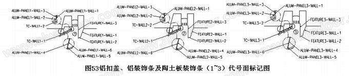 鋁扣板、鋁裝飾條及陶土板裝飾條側(cè)面代號示意圖如下:
