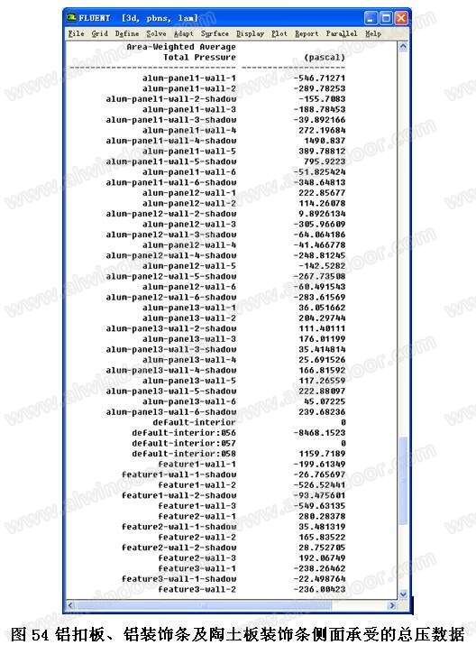 根據(jù)計算結果可知,由于第一個鋁扣蓋、鋁裝飾條及陶土板模型位于進風入口前面,空氣擾動激烈,此模型受到的局部風荷載較大,特別是較短鋁扣蓋的外側(cè)面,鋁裝飾條靠近格柵入口的外側(cè)面及陶土板迎風面外側(cè)的風荷載數(shù)值比其他位置均高,說明此區(qū)域可能會受到由于局部體型系數(shù)的變化而引起風荷載的不利作用,因此應對以上位置做特殊處理。