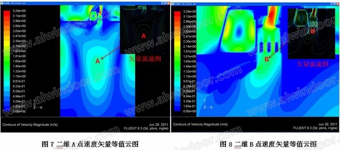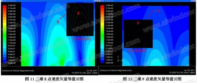 C點:開啟門入口最狹窄位置的空氣流速達到最大值:約3.1m/s;在雨季時期,雨水在空氣壓強作用下會飄進室內(nèi),因此在風雨季節(jié)應注意關閉開啟門。