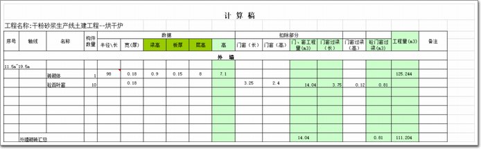 工程量計算書自動計算匯總表