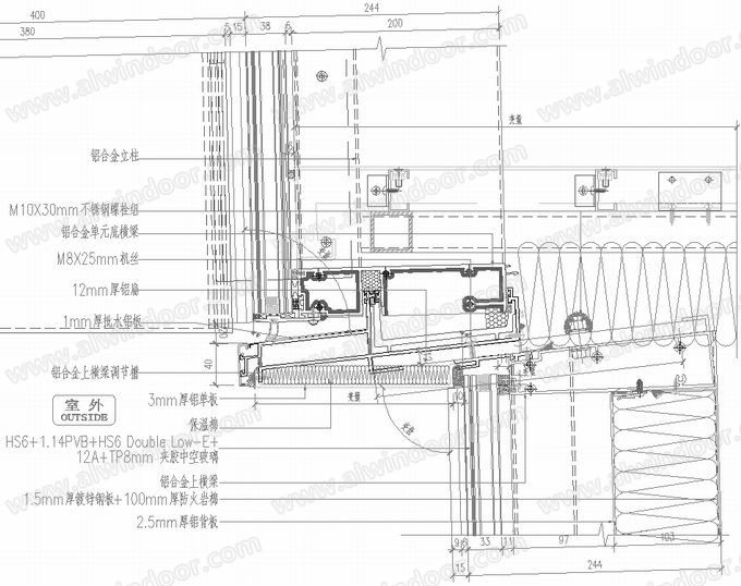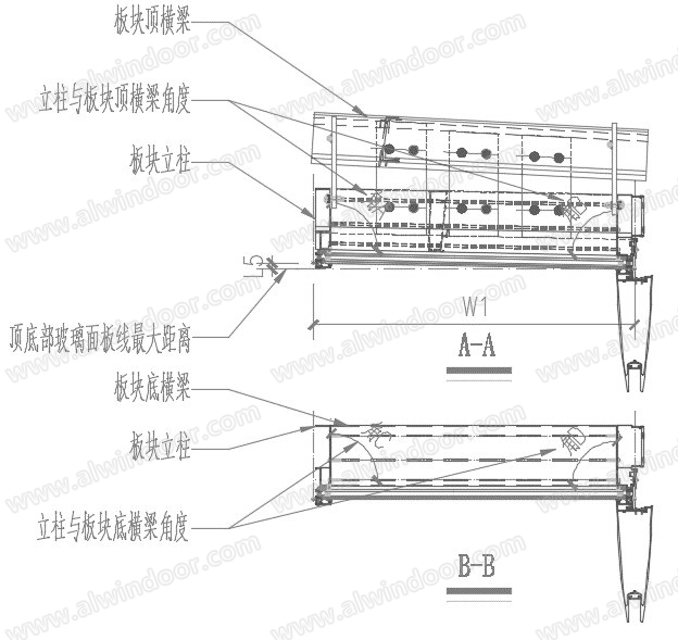 退臺(凸臺)位置,上橫梁調節槽與上橫梁的連接,各連接板連接螺栓必須做好密封防水處理,保證兩者為一個密封完整的整體。退臺(凸臺)錯位部位連接鋁扁后,錯位上下的保溫及防水功能必須按加工圖要求進行,板塊加工過程中任一環節都必須嚴格把控。(如圖3.7~3.9)