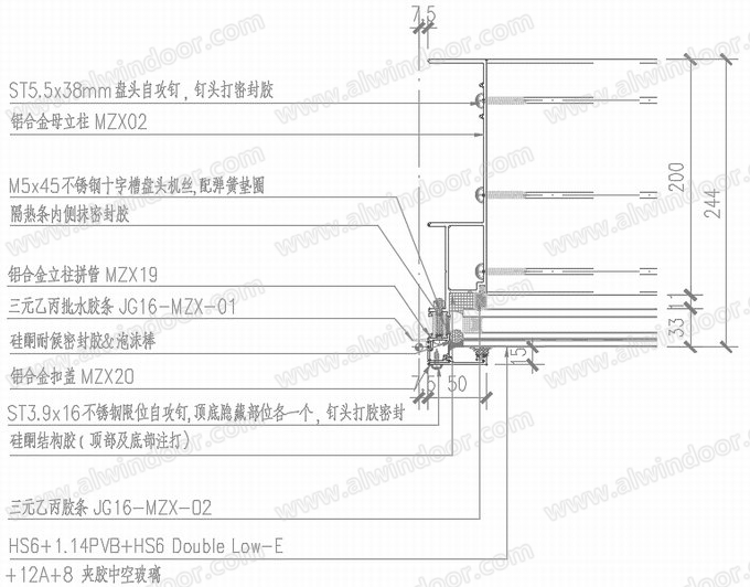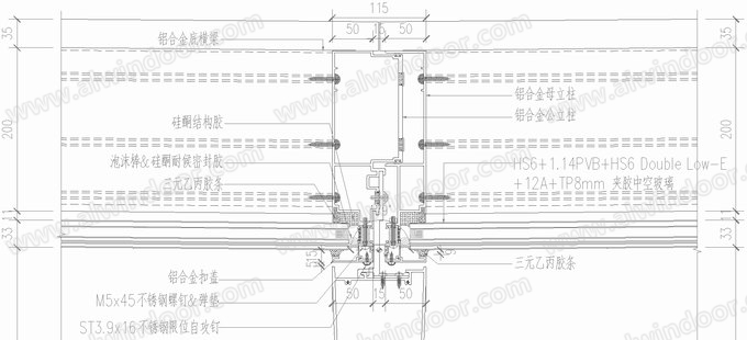 圖2.12錯位雙曲面單元式幕墻橫向構造節點圖