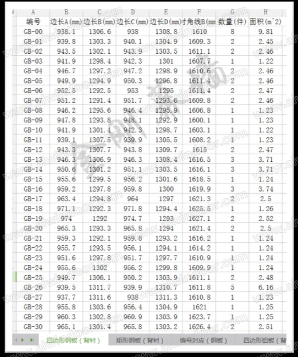 通過參數化模型分析,并結合加工廠的單元組裝要求,我們對板塊加工的各個尺寸變量進行嚴格控制,制定一個板塊參數表。板塊的加工必須按照表中的參數進行切割拼裝。