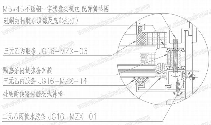 (4)膠條安裝完成后,需要有固定措施,防止運輸或由于熱脹冷縮影響,而出現膠條松垮或出現搭接不連續的情況出現;如,在穿有膠條的鋁型材(詞條“鋁型材”由行業大百科提供)上下端膠條槽口處用鉗子把鉗出印記,固定膠條,或采用萬能結構膠水分段涂膠水,將膠條固定在鋁型材上。