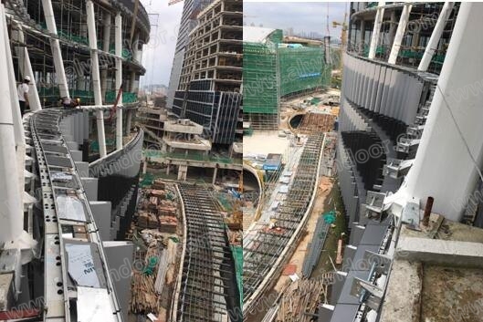 律動的美妙音符|上海國際傳媒港項目具有建筑外立面造型復雜、面板種類繁多、外觀細節要求嚴格等特點,項目包含框架式玻璃幕墻、單元式玻璃幕墻、鋁板幕墻、鋁合金吊頂、雨蓬、欄桿、百葉、金屬屋面等幕墻系統。項目的重難點在于——錯位雙曲面單元式幕墻的設計與施工。