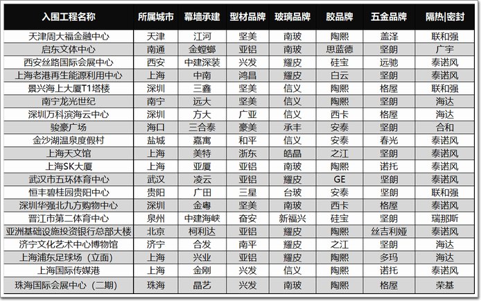 以下是入圍的幕墻企業及工程名單:
