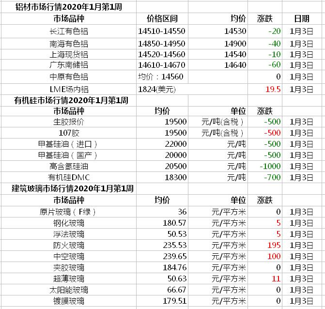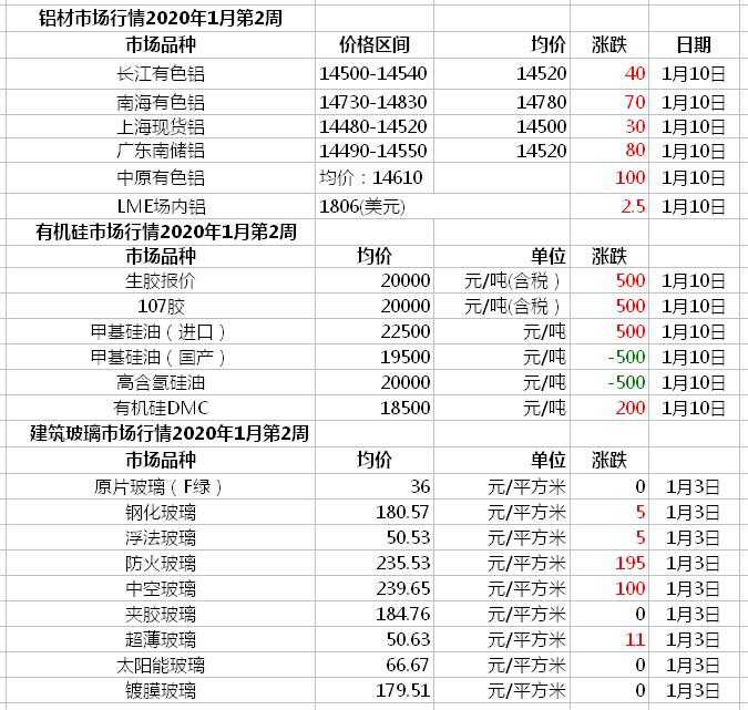 此原材料價格由中國幕墻網收集整理,僅供參考!