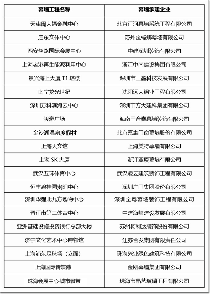已入圍幕墻工程項目20項: