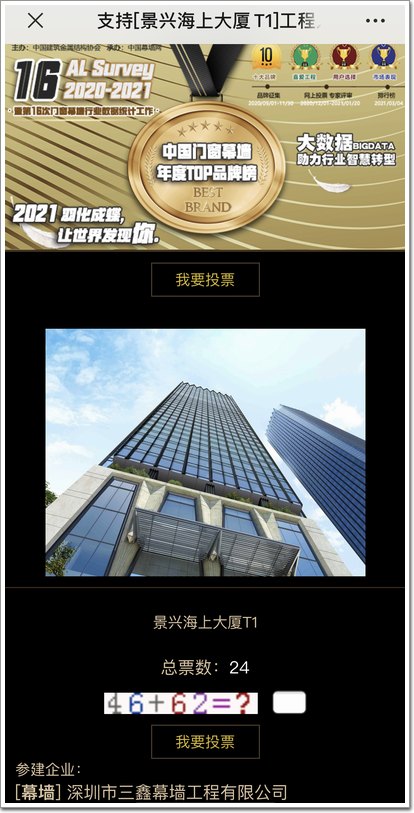 Step2、參與“幕墻工程”投票,選中“我最喜歡幕墻工程”(綠色圖標(biāo))