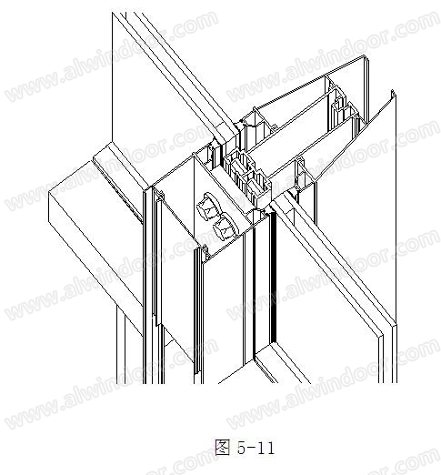 圖5-8為大裝飾帶構件式斷熱玻璃幕墻立柱組裝示意圖;
