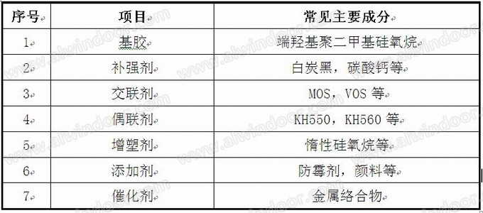 硅酮密封膠主要成份包括有107膠(α,ω-二羥基聚二甲基硅氧烷)、201甲基硅油、納米碳酸鈣、白炭黑、固化劑等,以不同的比例進行配方調制并按照相應的制備工藝混煉(詞條“混煉”由行業大百科提供)而成。通常107膠是硅酮膠(詞條“硅酮膠”由行業大百科提供)中的一種基礎聚合物,其含量直接決定密封膠長期使用的老化性能,也決定了密封膠的成本高低。行業內較多廠家會將密封膠內107含量降低以降低產品原材料成本,因此密封膠的質量降低,進而耐候性和耐久性下降。低價格的硅酮密封膠在使用過程中容易出現硬化、開裂、脫粘導致后期翻修整改,造成更多的資源浪費,不適用于環保要求的門窗密封。