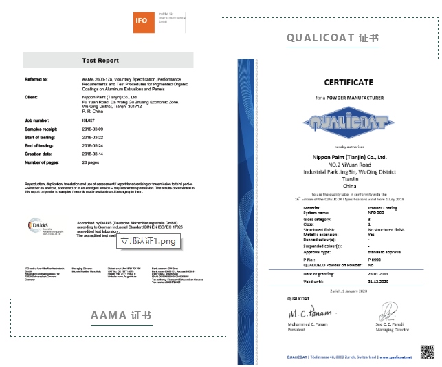 ●耐候性(詞條“耐候性”由行業大百科提供)能滿足嚴格的行業規格,Qualicoat class 2/ AAMA 2604。