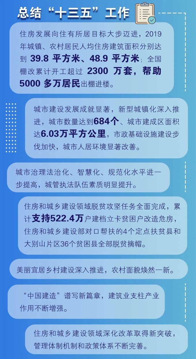 會議指出,“十三五”時期住房和城鄉建設事業發展取得了歷史性新成就。