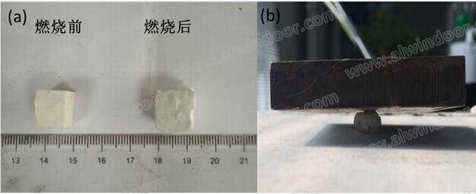 圖1 燃燒前后尺寸對比(a)/燃燒后硬度測試(b)