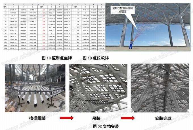 由于中廊屋面曲率變化大,板塊定位變得繁瑣復雜,因此所用幕墻構件均采用三維控制點定位安裝。從BIM模型導出三維控制點用于現場構件安裝定位,保證施工質量。