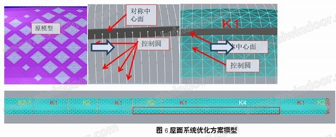 根據項目特征進行分析,將整個模型劃分為3個模塊(4個K1,3個K2,K4),優化后實際需建模部分僅為圖紙紅色框部分.這使得建模、設計下料、工廠加工的工作量大大減少,同時減少出錯率。優化后此部分工作量減少50%。