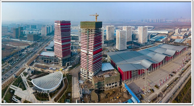 這兩座塔樓共同組成“武漢客廳藝術(shù)雙塔”。從遠(yuǎn)處看外立面形似紅色書籍堆放,以表達(dá)對(duì)知識(shí)與文化的尊崇,建筑整體呈螺旋向上,造型別致,水平線條清晰可見,體形纖細(xì)挺拔,時(shí)尚典雅,再加以紅色點(diǎn)綴,真的太有節(jié)日喜慶的氛圍了。