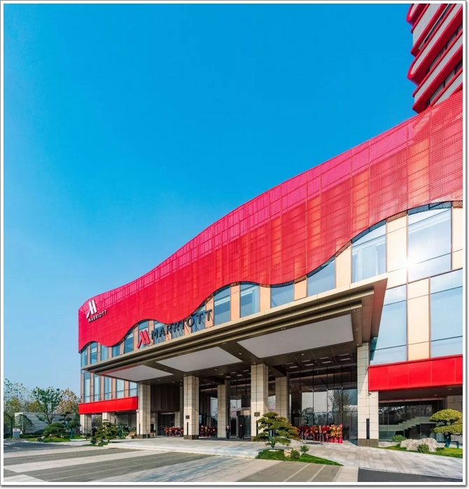 該項(xiàng)目是武漢客廳建筑群的標(biāo)志性建筑,也是武漢第一家萬豪酒店。項(xiàng)目融合了現(xiàn)代藝術(shù)設(shè)計(jì)及厚重的荊楚文化元素,詮釋出別具詩意的文化氛圍。超大的玻璃窗將恢宏城景展現(xiàn)在賓客面前。內(nèi)墻采用古代中式窗戶設(shè)計(jì),頗有質(zhì)感。