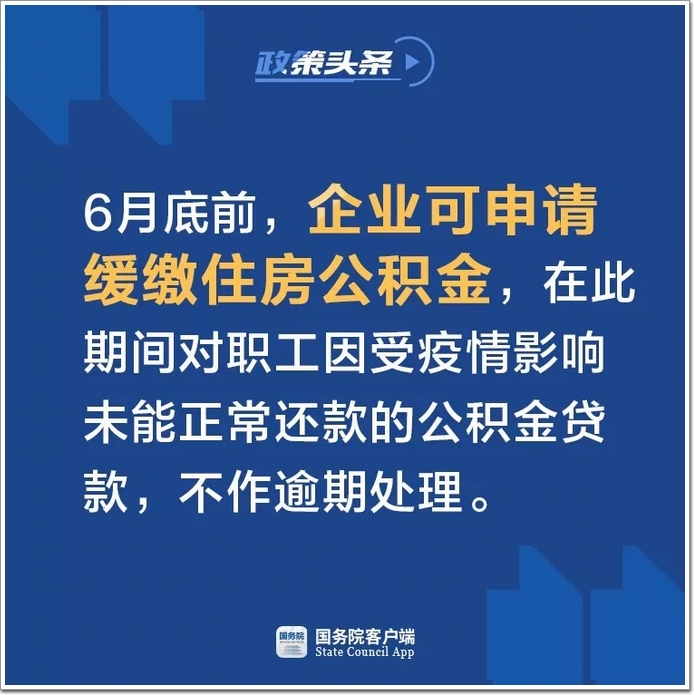 2、6月底前,企業(yè)可申請(qǐng)緩繳住房公積金。期間受疫情影響未正常還款的,不作逾期處理。