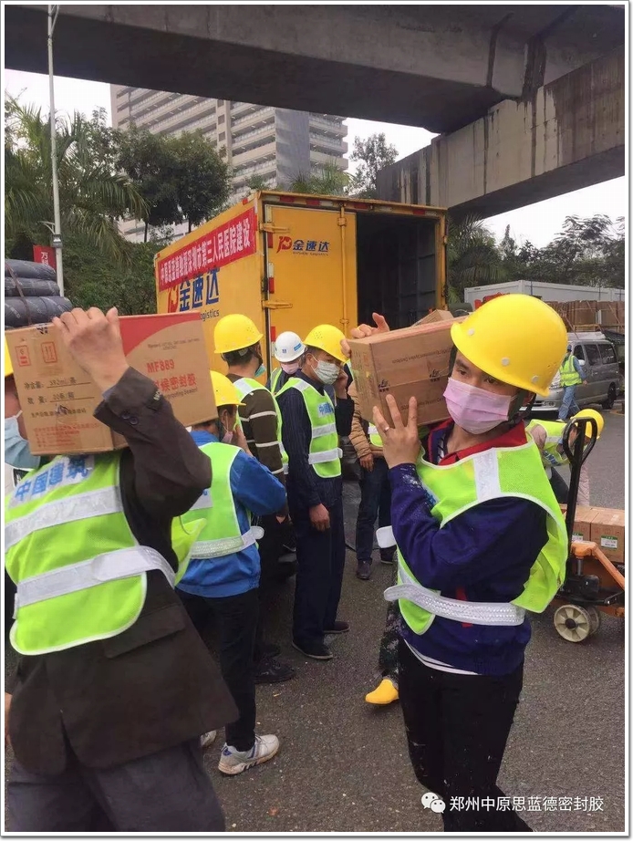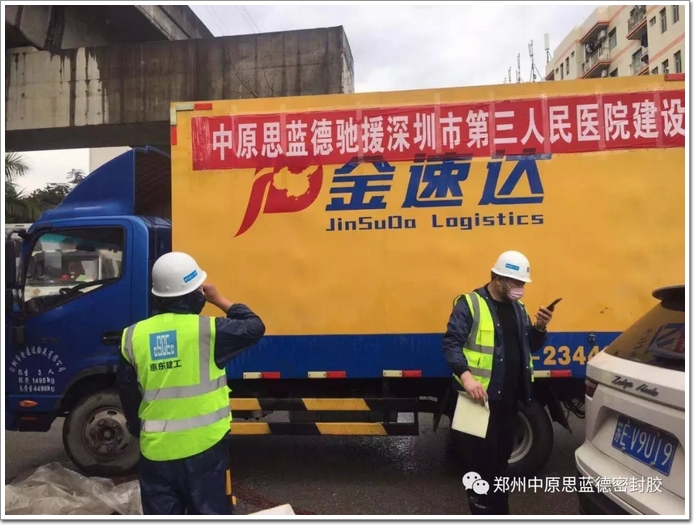 鄭州中原思藍德高科股份有限公司在嚴格按照鄭州疫情指揮部的疫情防控要求復工后,公司高層領導復工當天首先考慮現場用膠需求,在生產、物流、檢測、科研的通力協作下并克服疫情期間運輸困難專車將產品運抵現場。