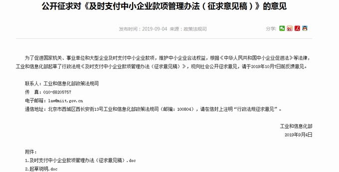 工信部發布《及時支付中小企業款項管理辦法(征求意見稿)》,明確提出: