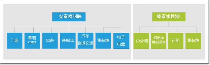 31年來,集泰股份專注于研發、生產密封膠和水性涂料。產品廣泛應用于建筑門窗幕墻、家庭裝修、裝配式建筑(詞條“裝配式建筑”由行業大百科提供)、集裝箱制造、鋼結構制造、石化裝備、軌道交通、LED驅動電源、新能源汽車等領域。