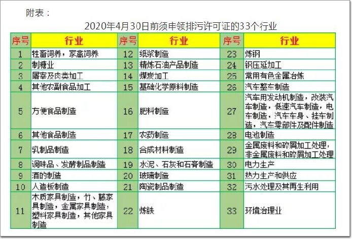 若屬附表33個行業的現有排污單位如仍未取得排污許可證,須于2020年4月30日前申請并取得排污許可證或完成排污登記。附表之外的排污單位,應于2020年9月30日前申請并取得排污許可證或完成排污登記。新建排污單位應當在啟動生產或者在實際排污之前申請取得排污許可證或進行排污登記。廣東省已于2019年8月起取消廣東省排污許可證的行政審批事項。持有原“廣東省污染物排放許可證”的排污單位也應按規定申領國家排污許可證或進行排污登記。