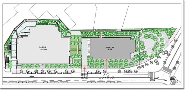 左邊(南)是日本青年館,右邊(北)是日本奧林匹克廣場