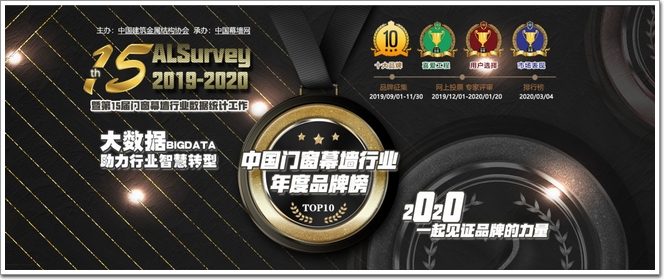 為了幫助建筑門窗(詞條“窗”由行業大百科提供)幕墻行業產業鏈企業,特別是廣大的會員單位,更好的認清行業地位和市場現狀,從而提升自身產品品質及服務能力,中國建筑金屬結構協會鋁門窗幕墻分會,在2019年9月啟動“第15次行業數據申報工作”。通過歷時三個月的表格提交,采集到大量真實有效的企業運行狀況報表,隨后,授權中國幕墻網ALwindoor.com以門戶平臺的身份,對門窗幕墻行業相關產業鏈企業,申報的數據展開測評研究,首次建立行業大數據模型,并推出《2019-2020年度中國門窗幕墻品牌及市場研究報告》,力求通過科學、公正、客觀、權威的評價指標體系和評價方法,評估出具有較強競爭力的產品企業品牌和工程服務商企業。