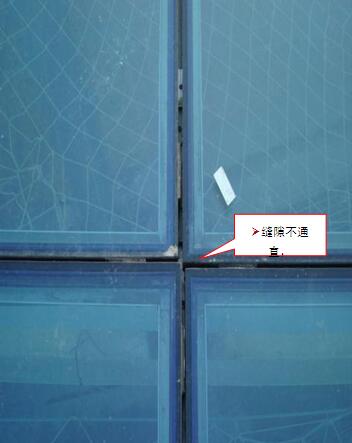 1、幕墻系統(tǒng)水密性、氣密性能不符合要求(結(jié)構(gòu)漏水、漏風(fēng)),如圖: