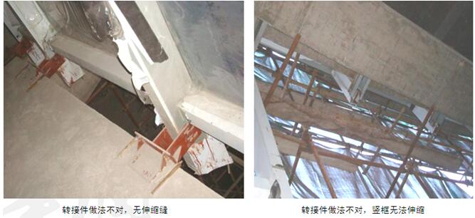 轉(zhuǎn)接件做法或伸縮縫做法不對(duì)。