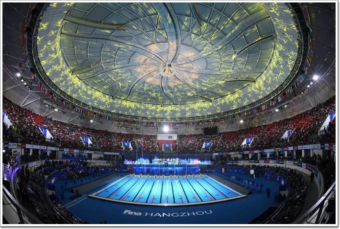 杭州奧體博覽城體育游泳館,則酷似一雙翅膀,似乎呼應(yīng)了體育解說員韓喬生的名言:菲爾普斯就像一只在水中的大鳥。項目總建筑面積39.7萬平方米,包括1.8萬座的體育館和6000座的游泳館。